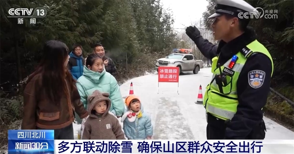 四川綿陽北川羌族自治縣近日迎來低溫降雪天氣,山區(qū)路段大范圍降雪和道路結(jié)冰現(xiàn)象明顯,為確保群眾往返交通順暢安全,當?shù)毓膊块T組織基層民警在重要路口設卡執(zhí)勤,維護交通秩序。交警在各路段有序開展除雪防滑作業(yè),清掃路面積雪和冰塊。