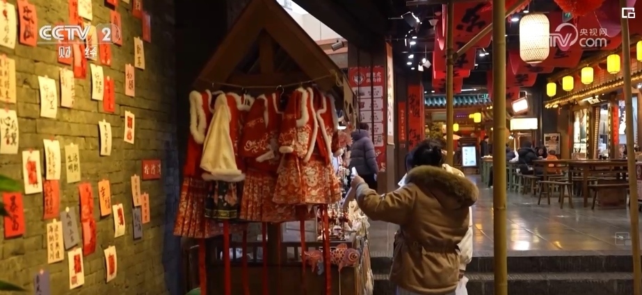 在中國人的習(xí)俗中,過年少不了趕集。長沙在宋朝時被稱作潭州,是重要的商業(yè)中心之一。在宋風(fēng)市井文化體驗(yàn)地潭州市集,春聯(lián)、龍燈等裝飾,吸引了不少游客。
