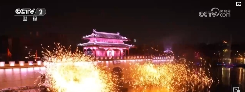 當(dāng)夜幕降臨,八朝古都開封也在燈光的裝扮下流光溢彩。打鐵花是流傳于豫晉地區(qū)民間傳統(tǒng)的煙火,至今已傳承千余年。在清明上河園內(nèi),表演者先將鐵水舀起拋向空中,再用力擊打空中的鐵水,一時間鐵花飛濺、流星如瀑。園內(nèi),亭臺樓閣雕梁畫棟、虹橋清波舟船往來,大型實(shí)景水上演出再現(xiàn)了北宋汴梁的盛世繁榮。
