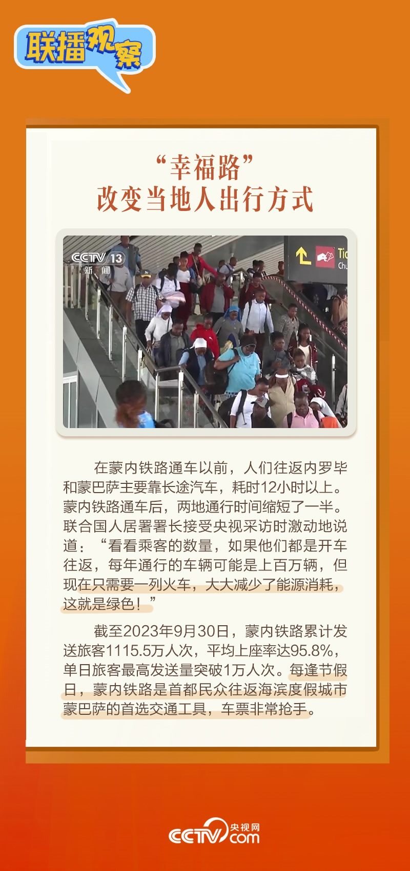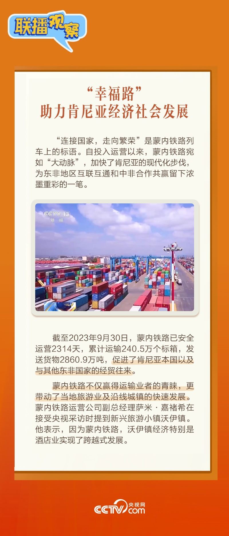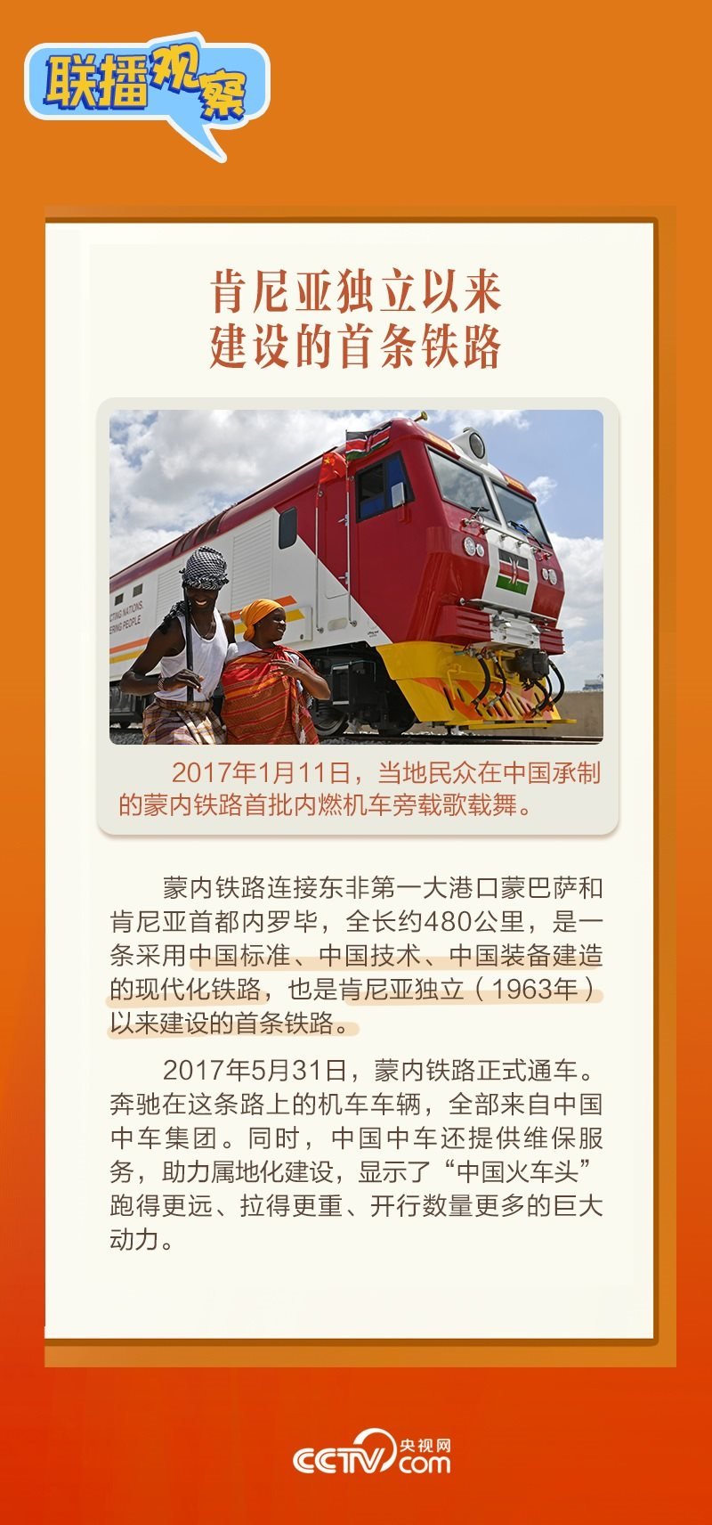 此前,習(xí)主席在外事活動中多次提及蒙內(nèi)鐵路,《新聞聯(lián)播》也持續(xù)關(guān)注這條路的建設(shè)及開通后的運(yùn)營情況。這條“幸福路”有何特別之處,習(xí)主席為何頻頻提及?它的建成通車給當(dāng)?shù)貛砟男┳兓俊堵?lián)播觀察》邀您一同了解。