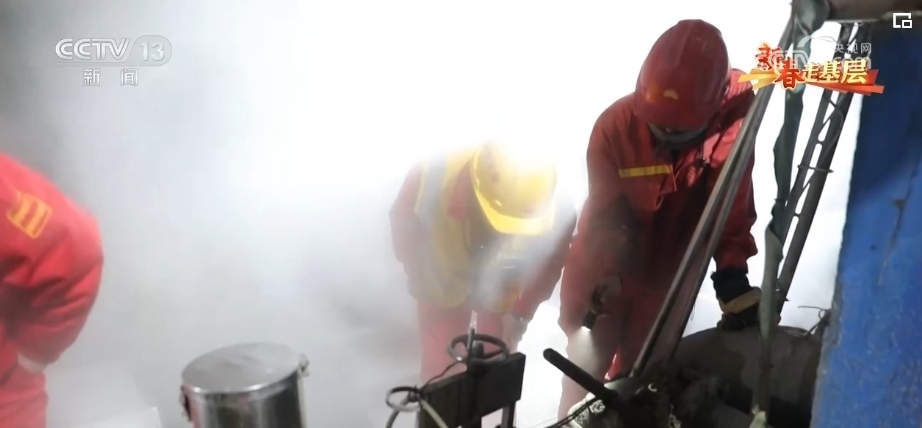 夜幕降臨,“英雄嶺”最低氣溫接近零下30攝氏度。在向地下深處挺進(jìn)的過(guò)程中,滾燙的泥漿隨時(shí)都會(huì)噴到衣服和臉上,又很快在嚴(yán)寒中變成一層冰泥殼。