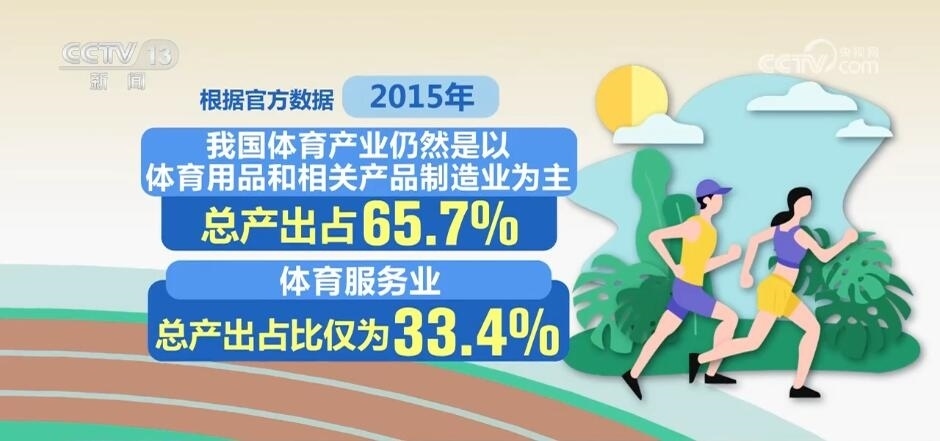 根據(jù)官方數(shù)據(jù),2015年,我國(guó)體育產(chǎn)業(yè)仍然是以體育用品和相關(guān)產(chǎn)品制造業(yè)為主,總產(chǎn)出占65.7%,體育服務(wù)業(yè)總產(chǎn)出占比僅為33.4%。不過(guò),在增加值層面,體育服務(wù)業(yè)占比達(dá)到了49.2%,呈現(xiàn)出巨大的潛力和快速增長(zhǎng)的態(tài)勢(shì)。