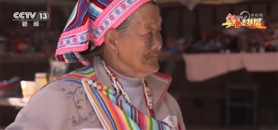 現(xiàn)在獨(dú)龍江鄉(xiāng),近千位獨(dú)龍族婦女和她一樣,在用傳統(tǒng)的方式編織著走向世界的獨(dú)龍?zhí)?,李文仕奶奶就是其中之一,她是目前?dú)龍族僅有的17位文面女中的一位。當(dāng)記者找到她時(shí),老奶奶正在熟練得玩手機(jī)。自從2022年5G網(wǎng)絡(luò)覆蓋了獨(dú)龍江鄉(xiāng)的6個(gè)行政村后,李文仕奶奶除了務(wù)農(nóng)織布、唱歌跳舞,還培養(yǎng)了一個(gè)新的愛(ài)好,就是網(wǎng)上沖浪。