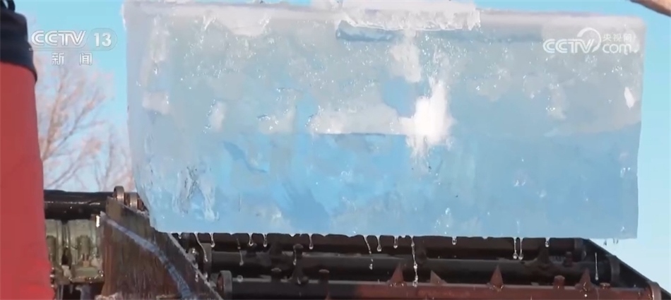 看冰燈、玩超長(zhǎng)冰滑梯、和萬人在冰天雪地?zé)嵛?,眼下的哈爾濱冰雪大世界堪稱歡樂的海洋。此時(shí),同樣熱鬧的還有松花江的冰面上,機(jī)器轟鳴、冰花飛濺,一塊塊晶瑩剔透的冰被拖出水面,裝車送往存冰場(chǎng)。