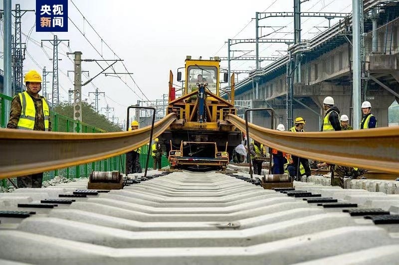 渝昆高鐵渝宜段正線全長約205公里,設計時速350公里,此次鋪軌工程量總共約391公里。鋪軌完成后將加快全線焊軌等作業(yè)。