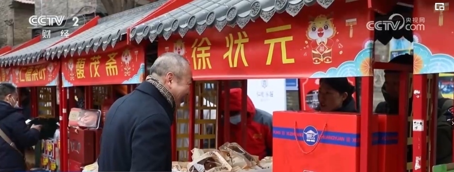 線上有“網(wǎng)上年貨節(jié)”, 線下有2024全國(guó)“老字號(hào)嘉年華”。在山東淄博,“老字號(hào)國(guó)貨潮品年貨大集”在周村古商城鳴鑼開市,匯集了淄博50余家老字號(hào)企業(yè)300余種產(chǎn)品。