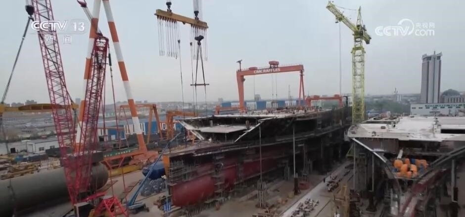 記者來到位于山東煙臺(tái)的中集來福士龍口基地,40萬平方米的生產(chǎn)基地上共有四個(gè)船臺(tái)生產(chǎn)線,每個(gè)船臺(tái)線都在滿負(fù)荷加緊生產(chǎn)。這個(gè)船臺(tái)上正在建造的是一艘能裝載7000輛汽車的滾裝運(yùn)輸船,將在今年5月份交付給上汽集團(tuán)。
