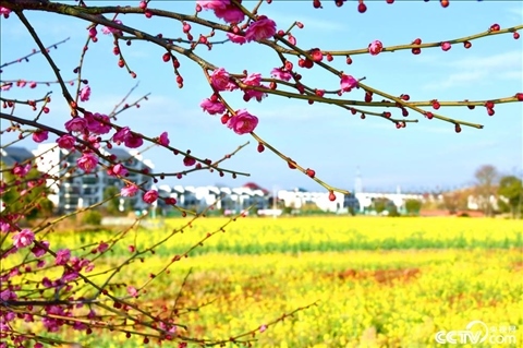 江西省贛州市興國(guó)縣埠頭鄉(xiāng),百畝油菜花競(jìng)相綻放,吸引游客前來(lái)賞花游玩。