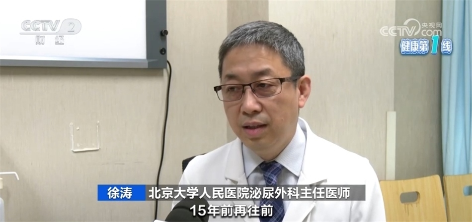 北京大學(xué)腫瘤醫(yī)院泌尿外科主任醫(yī)師 杜鵬:比如出現(xiàn)血尿、(腰部)疼痛,腰腹部的包塊,基本上都是晚期腎癌的表現(xiàn),90%以上早期腎癌是沒(méi)有任何表現(xiàn)的,都是體檢發(fā)現(xiàn)的。