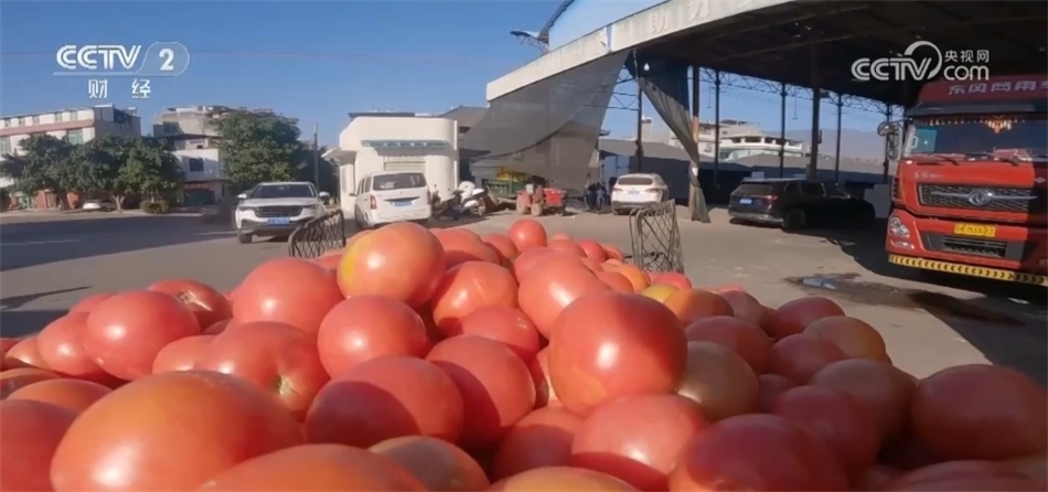 農(nóng)歷小年前夕,云南楚雄彝族自治州元謀縣的農(nóng)田里,農(nóng)用拖拉機正在裝載剛采摘下來的西紅柿。不遠處的元謀縣大型蔬菜交易中心里,貨車接力運輸,把一箱箱包裝好的西紅柿運往全國。