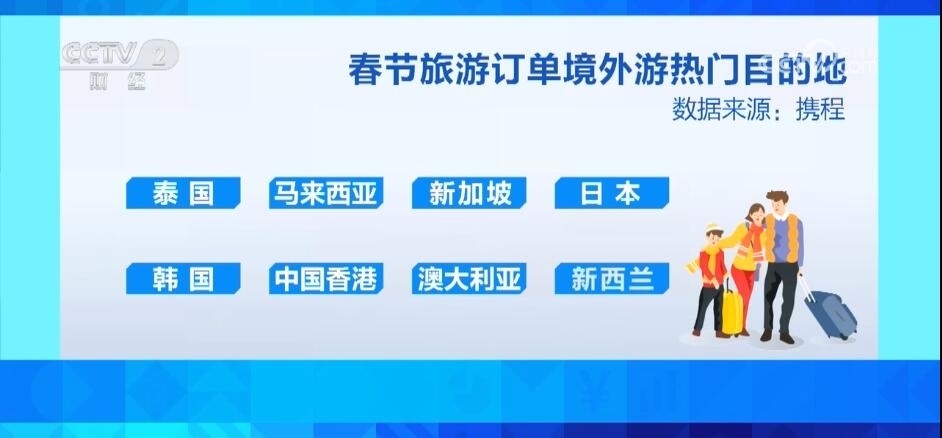 數(shù)據(jù)顯示,春節(jié)期間,國內(nèi)前十熱門目的地為北京、上海、廣州、深圳、哈爾濱、成都、西安、杭州、三亞、昆明。出境游方面,熱門旅游目的地則包括泰國、馬來西亞、新加坡、日本、韓國、中國香港、澳大利亞、新西蘭。