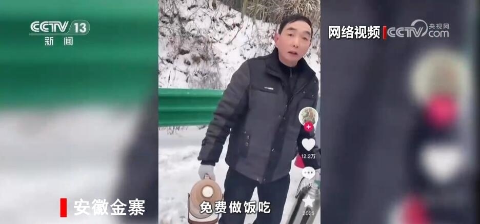 央視網(wǎng)消息:這幾天,很多人都在回家的路上遭遇了雨雪冰凍天氣,有的甚至在高速路上被困了十多個(gè)小時(shí)。面對(duì)這種情況,各地交通部門(mén)都在積極采取措施,為返鄉(xiāng)車(chē)輛做好保障。而與此同時(shí),很多受災(zāi)道路附近的居民紛紛走出家門(mén),為這些受困人員送來(lái)熱水、飯菜。接下來(lái),我們通過(guò)一組短視頻,來(lái)看一下發(fā)生在暴雪之中的溫暖故事。