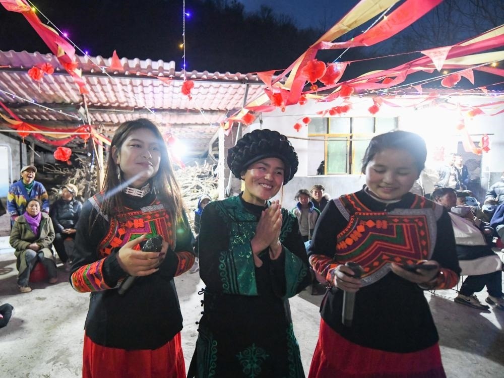 巫其石且的大哥巫其拉鐵家有好幾個女兒。正是拉鐵的二女兒巫其小梅在社交媒體上認(rèn)出新華社記者發(fā)布的照片拍的是巴木,才讓新華社記者最終找到了巴木。2日,是小梅的姐姐巫其小冰出嫁的日子,青年男女載歌載舞,給新人以祝福。
