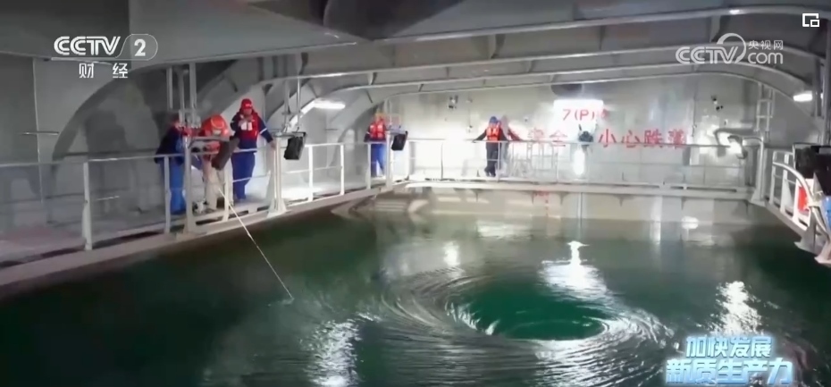 依靠首創(chuàng)的“船載艙養(yǎng)”模式,國信1號養(yǎng)殖工船,每年能實現(xiàn)3700噸高品質(zhì)魚類和650噸優(yōu)質(zhì)蛋白的供給。到了收獲的時候,艙內(nèi)的大黃魚將通過吸魚泵和傳送帶直接轉(zhuǎn)運至休眠池,在那里進行快速降溫休眠鎖鮮。