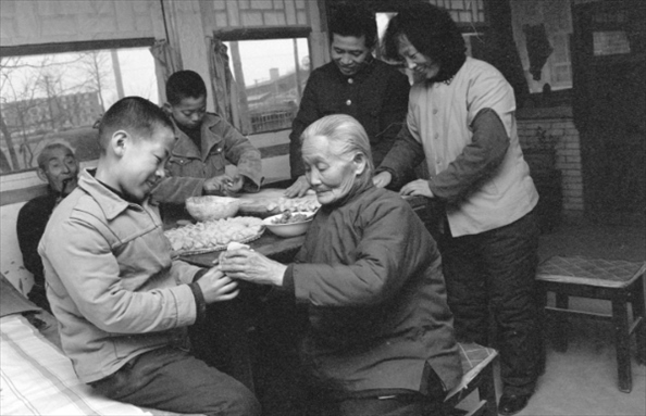1981年,內(nèi)蒙古呼倫貝爾牧民高高興興包餃子過春節(jié)。