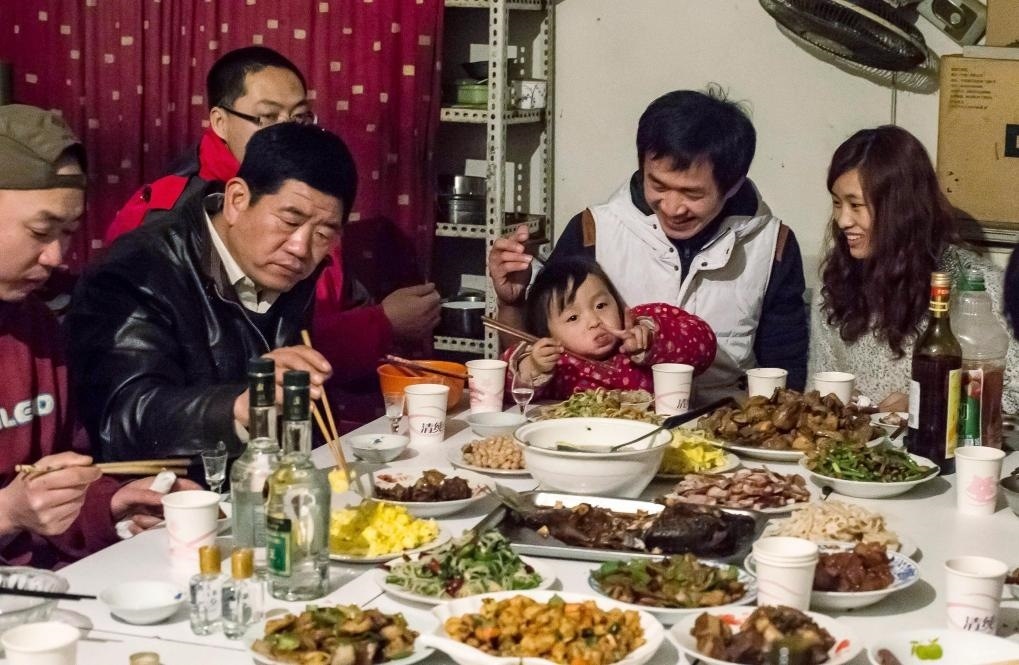 2009年1月25日,在四川都江堰,9戶居民圍在一起享用除夕的年夜飯。