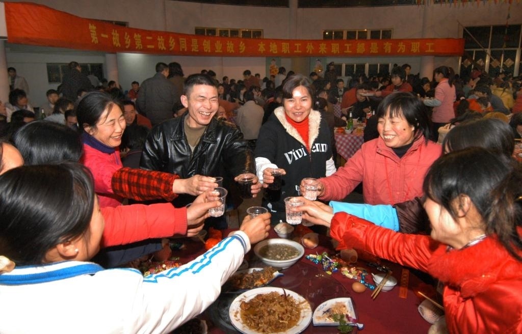 2008年1月31日晚,浙江義務(wù)一公司組織留守過年的400多名員工一起吃團(tuán)圓飯。