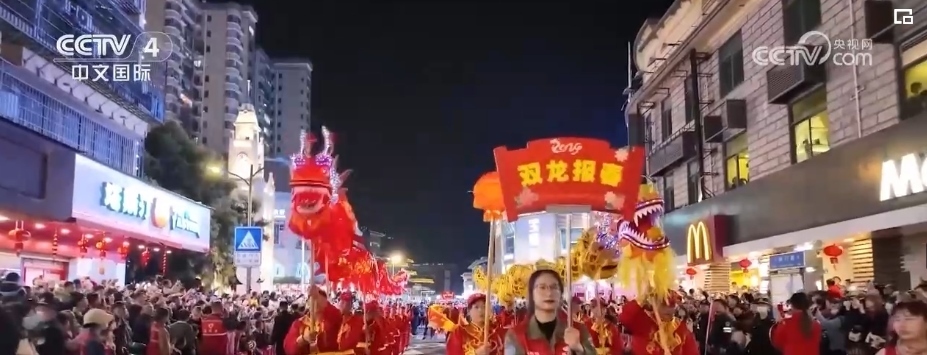 這幾天在廈門同安,盛大的傳統(tǒng)踩街民俗活動(dòng)與古城燈會(huì)同步開(kāi)啟。舞龍、舞獅、腰鼓隊(duì)等巡游隊(duì)伍從同安城中心出發(fā),表演者們身著盛裝、手持道具,先后經(jīng)過(guò)同安鐘樓、同安縣衙舊址等地,與市民游客熱情互動(dòng)。