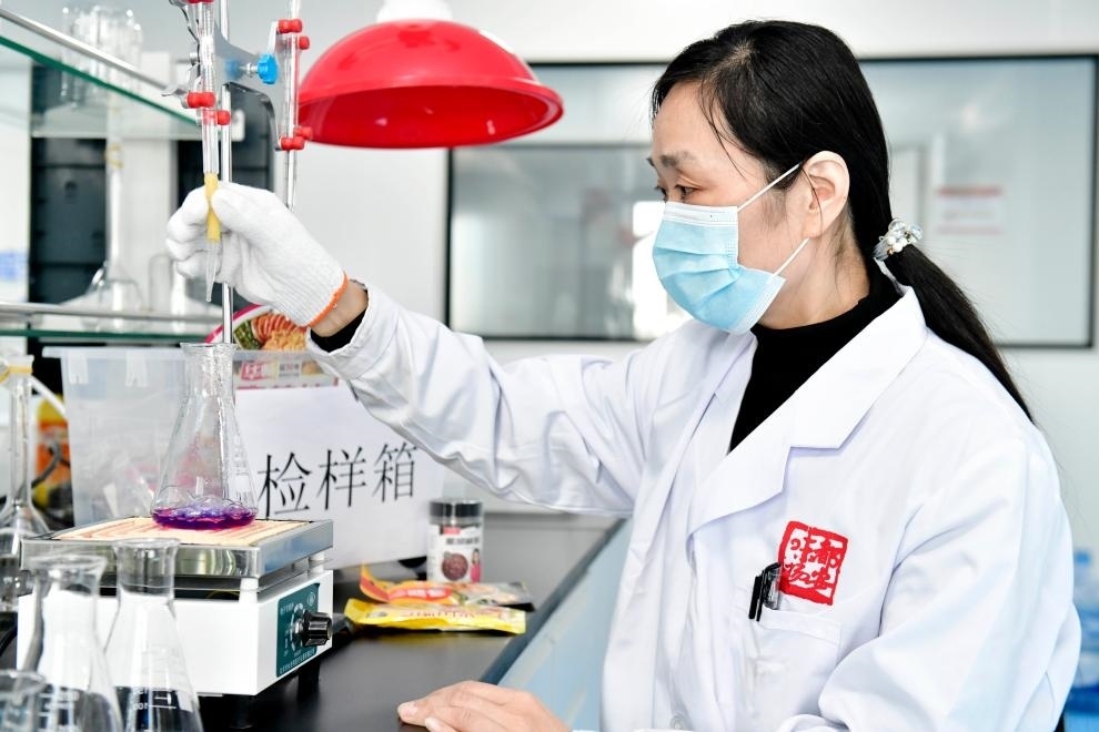 工作人員在樂陵市調(diào)味品產(chǎn)業(yè)共享實(shí)驗(yàn)室對送樣調(diào)味品進(jìn)行檢測。新華社記者 郭緒雷 攝