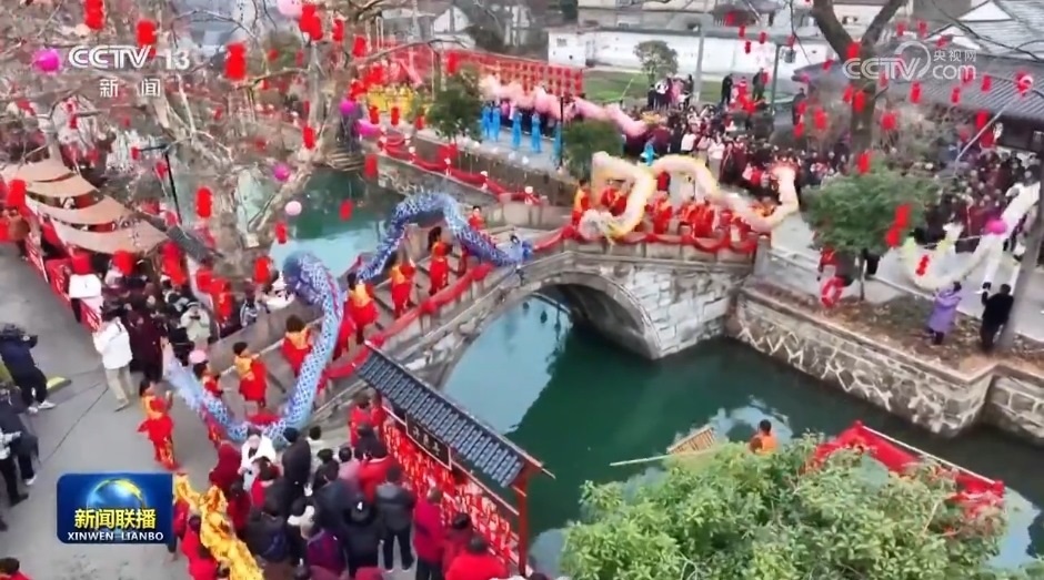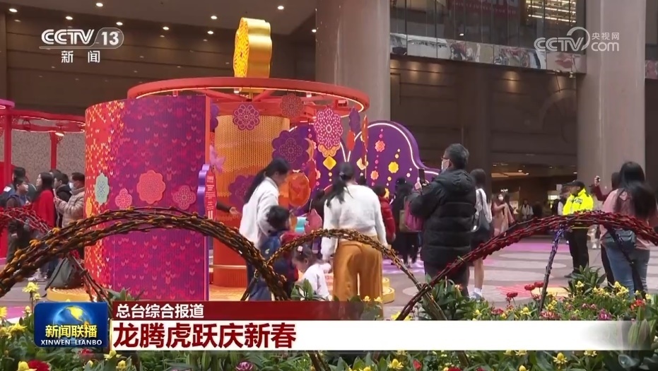 央視網(wǎng)消息(新聞聯(lián)播):各地的人們?cè)诙嘧硕嗖实幕顒?dòng)中歡度新春假日,慶祝龍年新春的到來。