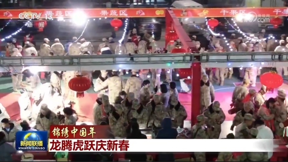春節(jié)期間,大江南北座座軍營里,戰(zhàn)鼓迎春、舞龍舞獅、新春游園會(huì)、冰雪嘉年華、軍營年貨夜市……各種野戰(zhàn)文化娛樂活動(dòng)精彩紛呈,陣陣歡聲笑語讓部隊(duì)年味十足。