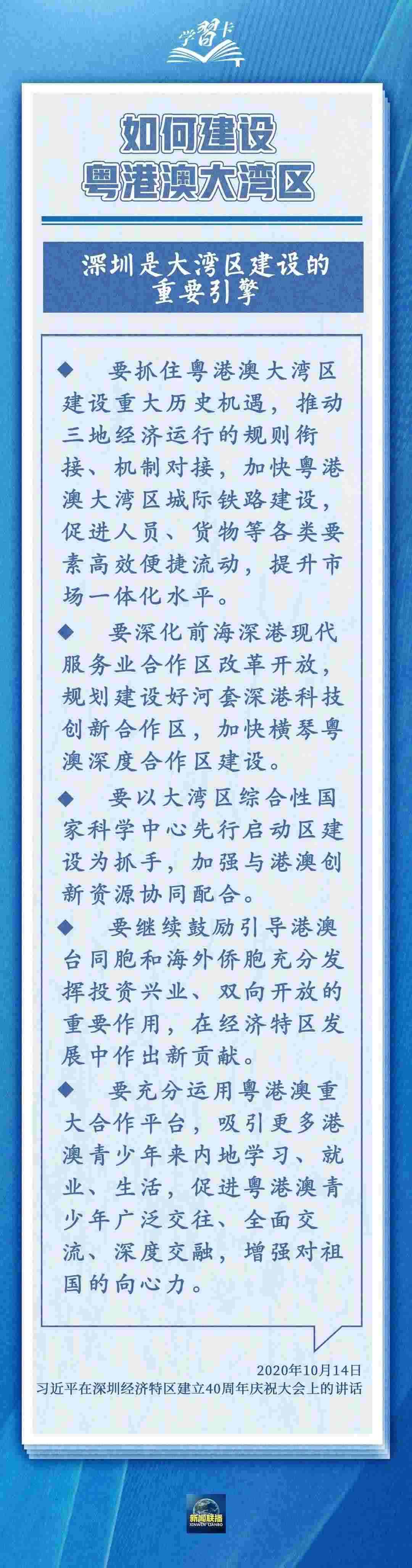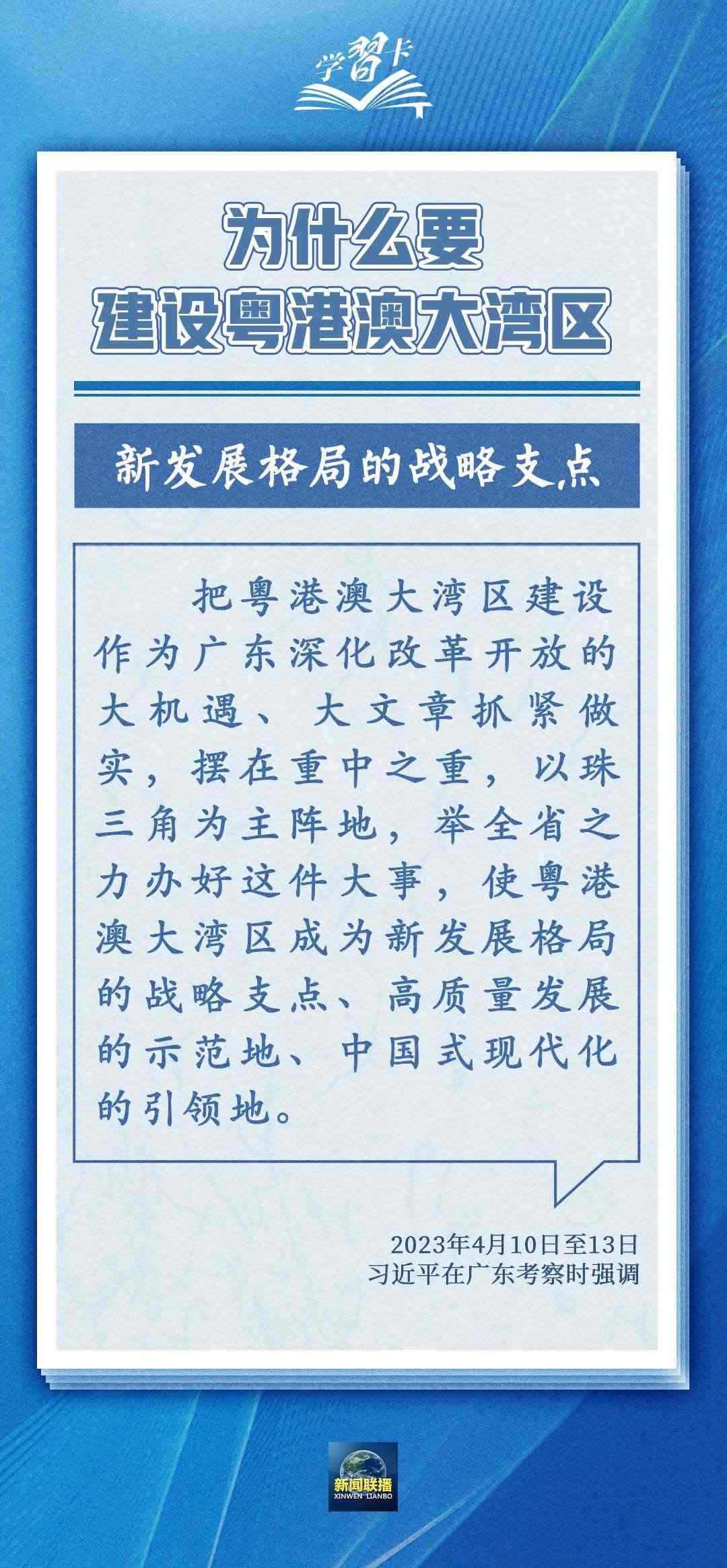 建設(shè)粵港澳大灣區(qū),是習(xí)近平總書記親自謀劃、親自部署、親自推動的重大國家戰(zhàn)略。2024年是《粵港澳大灣區(qū)發(fā)展規(guī)劃綱要》頒布實施5周年,習(xí)近平總書記在多個場合對推進粵港澳大灣區(qū)建設(shè)作出重要指示。