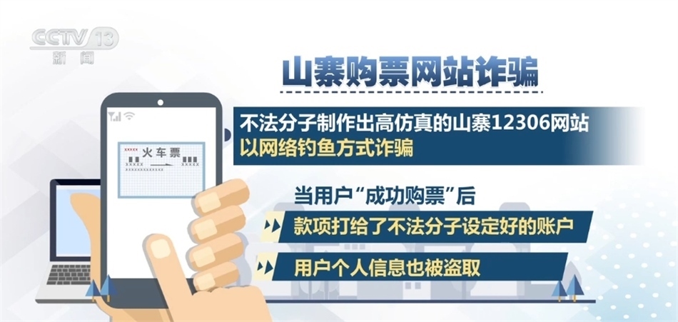 山寨購票網(wǎng)站詐騙:不法分子制作出高仿真的山寨12306網(wǎng)站,以網(wǎng)絡釣魚方式詐騙,這些網(wǎng)站在頁面布局、域名上與12306網(wǎng)站非常相似。當用戶“成功購票”后,款項打給了不法分子設定好的賬戶,用戶個人信息也被盜取。