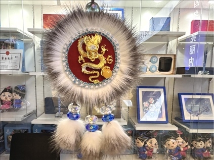 在“十四冬”的主媒體中心,多個(gè)玻璃展柜里的漢代陶罐、北魏陶俑、清代簪花木碗等文物,記錄并展現(xiàn)了呼倫貝爾民族交融史。此外,精美的太陽花手工藝品、皮雕畫作、樺樹皮工藝品等非遺作品也吸引了許多人的目光。