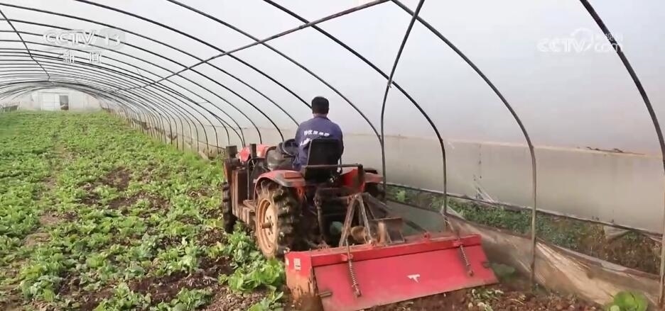 在銅梁區(qū)土橋鎮(zhèn)慶林村的蔬菜基地,種植戶(hù)正利用大型旋耕機(jī)在大棚里整地,準(zhǔn)備播種早春蔬菜。