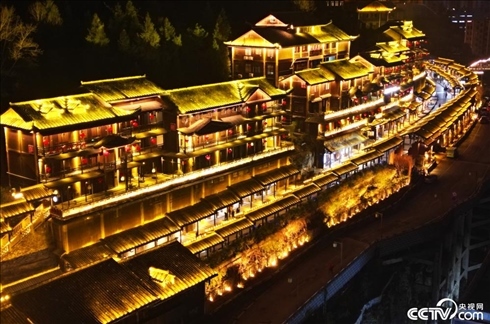 重慶酉陽,酉州古城夜景璀璨美如畫。