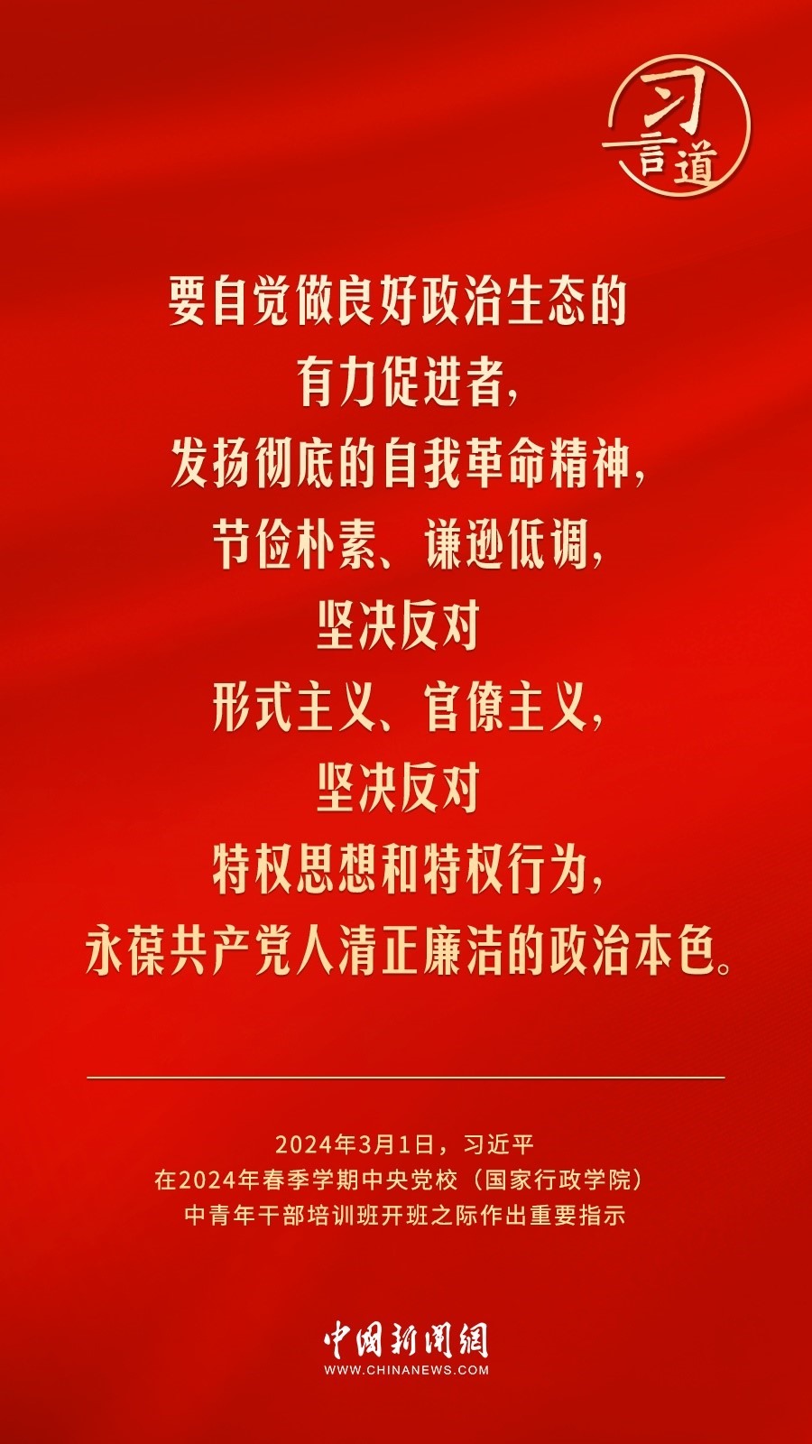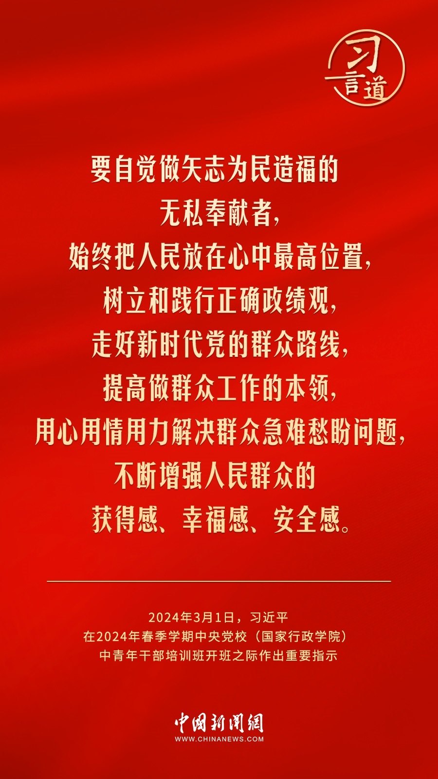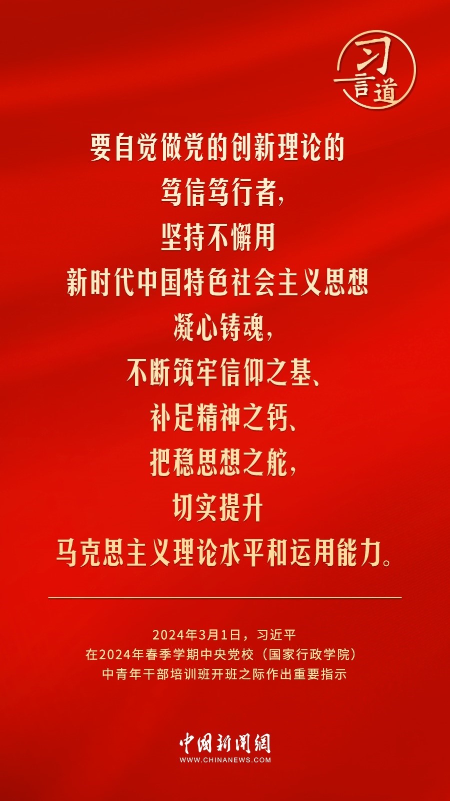 2024年春季學(xué)期中央黨校(國家行政學(xué)院)中青年干部培訓(xùn)班3月1日上午在中央黨校開班。中共中央總書記、國家主席、中央軍委主席習(xí)近平作出重要指示,他強(qiáng)調(diào)——