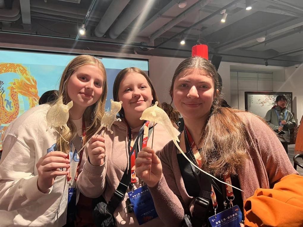 △ 2024年1月下旬,馬斯卡廷中學(xué)訪華代表團(tuán)學(xué)生在上海體驗(yàn)民俗活動。
