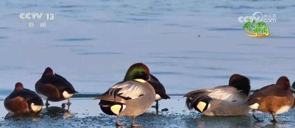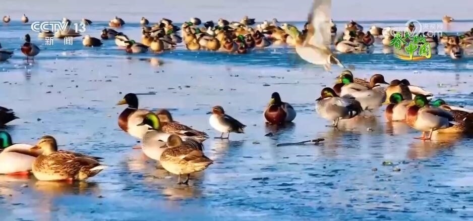 隨著天氣轉(zhuǎn)暖,山東泰安東平湖迎來了4000余只綠頭鴨、斑嘴鴨等水鳥,其中還有國家一級保護動物青頭潛鴨。它們有的在還沒融化的冰面上休息,有的在初融的水面上蕩漾玩耍,十分愜意。近年來,東平湖及周邊地區(qū)的生態(tài)環(huán)境得到了整體改善和提升,這里成為候鳥遷徙的重要停歇地和中轉(zhuǎn)站。