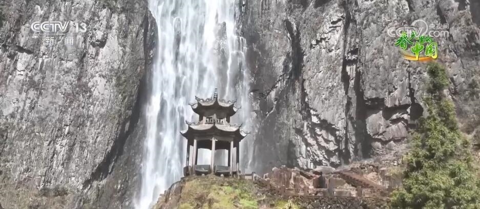 春日中國,山河壯美?,F(xiàn)在我們看到的是位于浙江溫州文成縣的百丈漈景區(qū),景區(qū)為“V”字形深壑巨澗,澗長1200米,落差353米,從而形成一漈、二漈、三漈的三折瀑布。初春時分,萬物復(fù)蘇,正是游人踏青的好時節(jié),不少游客慕名而來,近距離感受瀑布的壯麗之美。