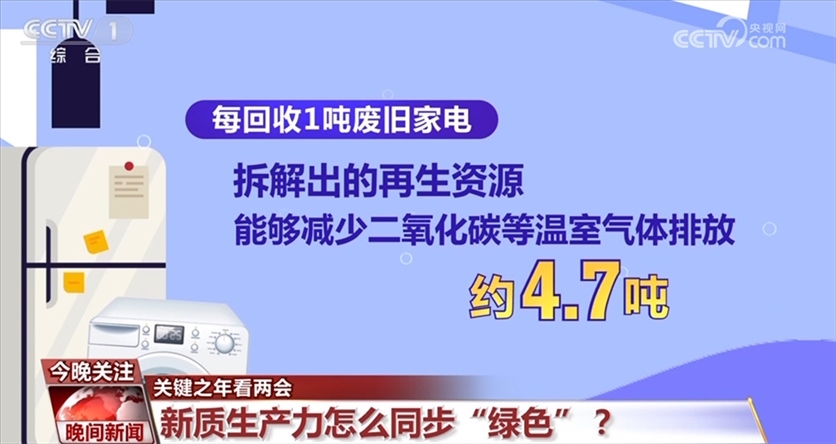 數(shù)據(jù)顯示,2023年,冰箱、洗衣機(jī)、空調(diào)等主要品類家電保有量超過(guò)30億臺(tái),一些家電使用了十多年、二十年,更新?lián)Q代的需求和潛力很大。據(jù)統(tǒng)計(jì),2023年,我國(guó)廢舊家電回收總量達(dá)450萬(wàn)噸,而每回收1噸廢舊家電,拆解出的再生資源能夠減少二氧化碳等溫室氣體排放約4.7噸。