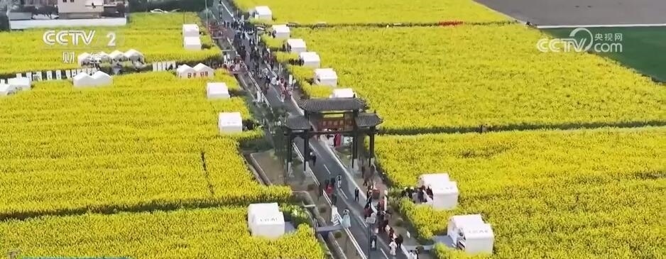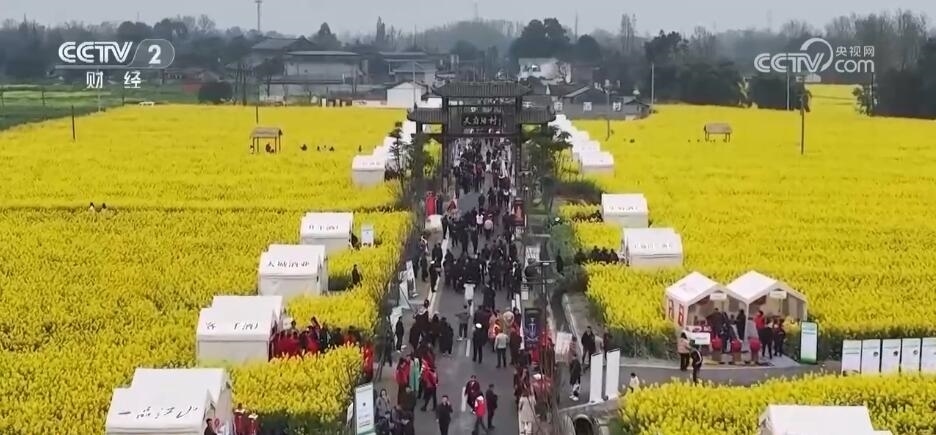 除了“花田火鍋”,在以油菜花田為背景的鄉(xiāng)村道路上,各類(lèi)裝滿(mǎn)當(dāng)?shù)靥厣r(nóng)產(chǎn)品的攤位依次擺開(kāi)。游客們迎著花香趕大集,帶走春日特有的伴手禮。