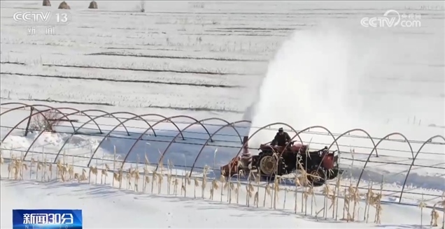 在黑龍江哈爾濱市延壽縣,種植戶正在搶抓天氣回暖有利時機開展清雪扣棚工作。