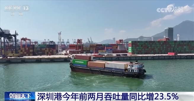 深圳港今年前兩月吞吐量同比增23.5%