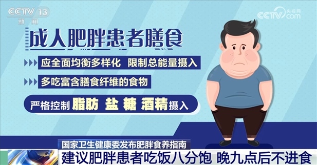 央視網(wǎng)消息:記者從國(guó)家衛(wèi)生健康委了解到,今年被確定為“健康體重管理年”。近日,國(guó)家衛(wèi)生健康委發(fā)布了《成人、兒童青少年肥胖食養(yǎng)指南》,指南指出,我國(guó)18歲及以上居民肥胖率呈上升趨勢(shì),兒童青少年肥胖率快速上升,肥胖防控已刻不容緩。指南針對(duì)不同地區(qū)的不同肥胖人群提供了營(yíng)養(yǎng)健康建議。