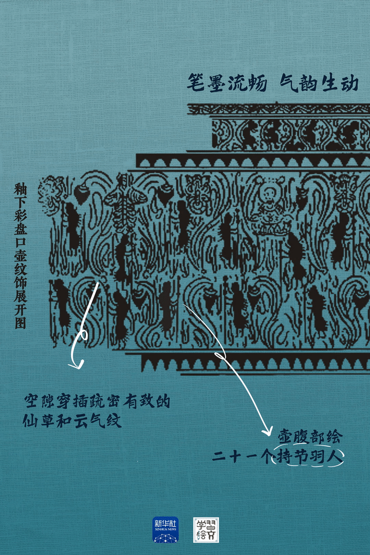 “這件藏于六朝博物館的青瓷釉下彩羽人紋盤口壺于1983年出土,精湛的釉下彩繪工藝,改變了人們對釉下彩工藝始于唐代的認(rèn)識(shí),把我國釉下彩繪工藝出現(xiàn)的時(shí)間提前了近五百年?!彼窝嗾f。