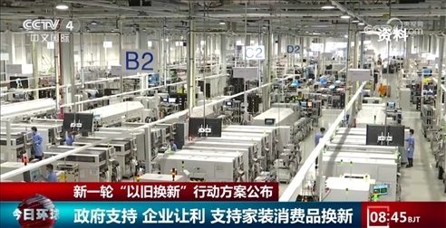 央視網(wǎng)消息:《推動大規(guī)模設(shè)備更新和消費品以舊換新行動方案》日前對外發(fā)布。