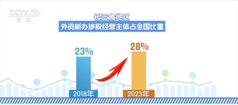 此外,長三角地區(qū)不斷擴大制度性開放水平,推動構建優(yōu)良營商環(huán)境,在吸引外資方面保持優(yōu)勢。稅收數(shù)據(jù)顯示,長三角地區(qū)外資新辦涉稅經(jīng)營主體占全國比重由2018年的23%提升至2023年的28%。其中,2019—2023年,吸引共建“一帶一路”國家來長三角投資主體超過8600戶,占共建“一帶一路”國家來我國投資涉稅經(jīng)營主體數(shù)量近50%。