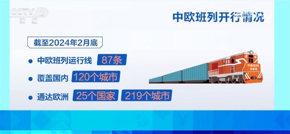 目前,全國鐵路直通快運班列開行數(shù)量已達到340條,其中,“班列+班輪”的鐵??炀€產(chǎn)品已實現(xiàn)對全國主要港口的全覆蓋,中歐班列運行線87條,覆蓋國內120個城市,通達歐洲25個國家219個城市。