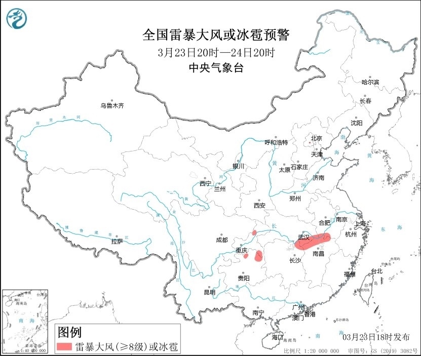 央視網(wǎng)消息:中央氣象臺3月23日18時(shí)繼續(xù)發(fā)布強(qiáng)對流天氣藍(lán)色預(yù)警。預(yù)計(jì)3月23日20時(shí)至24日20時(shí),湖北東部、湖南北部、江西北部、重慶東南部、貴州北部等地的部分地區(qū)將有8-10級雷暴大風(fēng)或冰雹天氣;安徽南部、江蘇南部、湖北東南部、湖南東北部、江西北部、浙江北部、重慶北部等地的部分地區(qū)將有短時(shí)強(qiáng)降水天氣,最大小時(shí)雨量20-40毫米,局地可達(dá)50毫米以上。