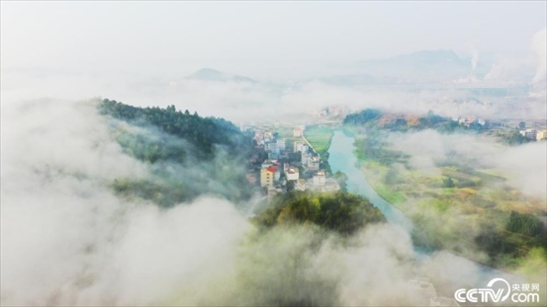 2024年3月20日,湖南永州,新田縣現(xiàn)平流霧景觀,如夢如幻。