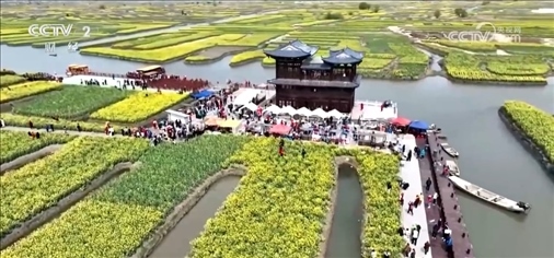 “垛田”是里下河地區(qū)獨有的農(nóng)業(yè)景觀。每塊“垛田”或方或圓,面積大的兩三畝,小的只幾分幾厘,今年因為天氣的原因,花開晚了五天左右,從現(xiàn)在到4月中下旬是理想的賞花期,預(yù)計會迎來超過150萬名游客。