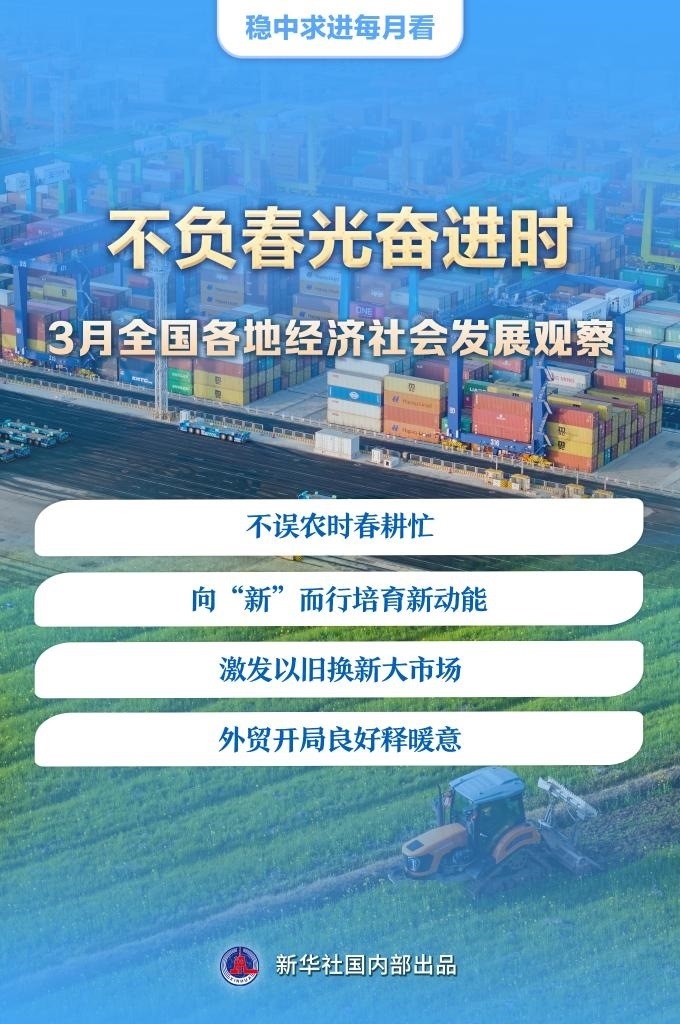 新華社北京3月29日電 題:不負春光奮進時——3月全國各地經濟社會發(fā)展觀察