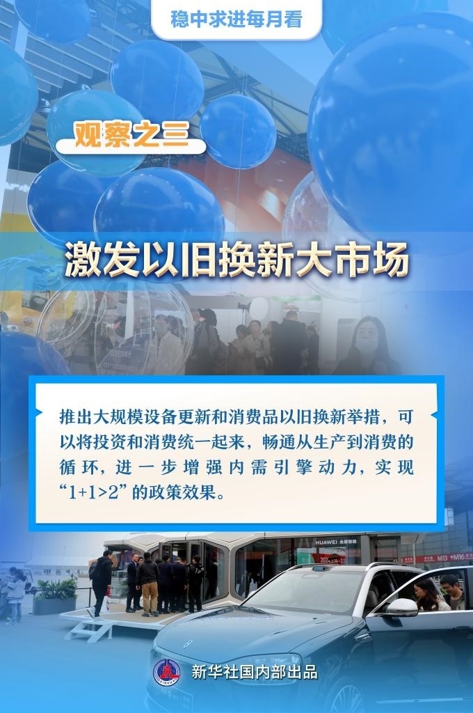 【記者觀察】推出大規(guī)模設備更新和消費品以舊換新舉措,可以將投資和消費統(tǒng)一起來,暢通從生產到消費的循環(huán),進一步增強內需引擎動力,實現(xiàn)“1+1>2”的政策效果。