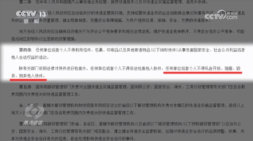 國務院頒布的《快遞暫行條例》第四條明確規(guī)定:“任何單位或者個人不得私自開拆、隱匿、毀棄、倒賣他人快件?!?/p>