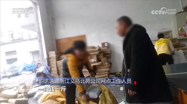 那么,涉事公司的快遞網(wǎng)點到底存不存在這種情況呢?記者進行了實地探訪。在快遞網(wǎng)點的退件區(qū),現(xiàn)場有穿著“北苑韻達”字樣服裝的工作人員正在作業(yè)。工作人員告訴記者,退件用車拉走,一元錢一斤賣掉。